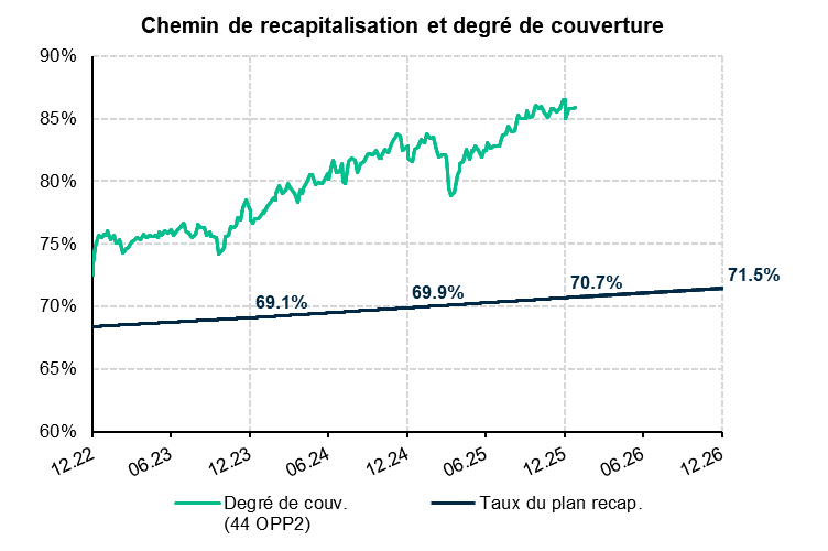 Suite à l’entrée en vigueur des dispositions fédérales relatives aux institutions de prévoyance de droit public (IPDP) en capitalisation partielle (art. 72a-g LPP), la loi sur la Caisse de pensions de la fonction publique du canton de Neuchâtel (LCPFPub) a été modifiée en 2014 afin de satisfaire à ces nouvelles exigences. Un plan de recapitalisation permettant notamment d’atteindre un taux de couverture de 80% d’ici 2052 a été mis en place et validé par l’Autorité de surveillance (As-So).